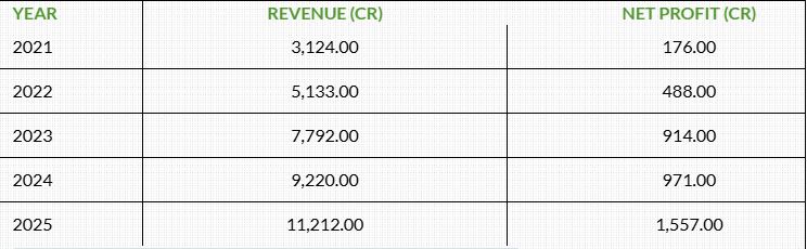 The following table summarizes the financial performance of Adani Green Energy Limited over the past five years: