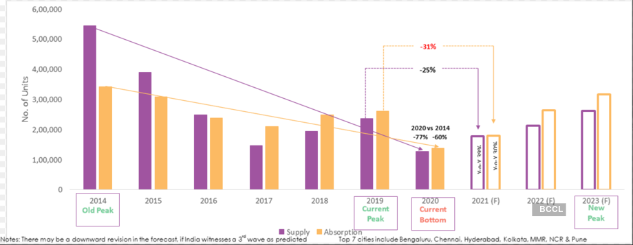 2021 is expected to fare better than 2020, but it is unlikely to reach the levels of 2019 - the most recent peak year, said analysts. With the vaccination drive gaining significant momentum and the spread of COVID-19 under better control for now, 2023 will very likely emerge as the new peak year that breaches 2019 levels with supply that year growing by 11% and sales by 22% over 2019, Puri added.
